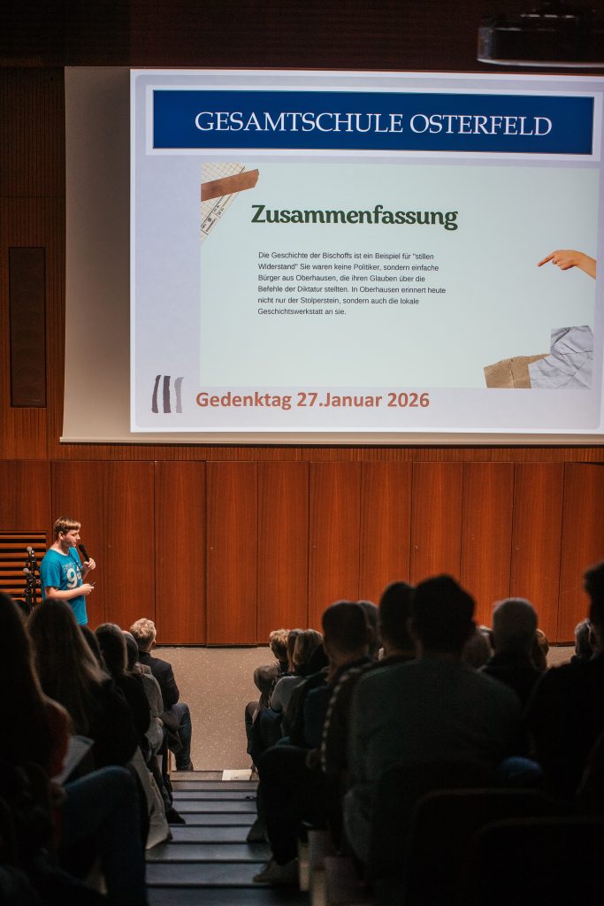 Die Beiträge wurden vom Publikum mit großer Aufmerksamkeit und Anerkennung aufgenommen. Zu den anwesenden Gästen zählte unter anderem der Oberbürgermeister der Stadt Oberhausen sowie weitere Vertreterinnen und Vertreter aus Politik, Verwaltung und Gesellschaft. Die inhaltliche Qualität und die souveräne Präsentation der Schüler fanden durchweg positive Resonanz.