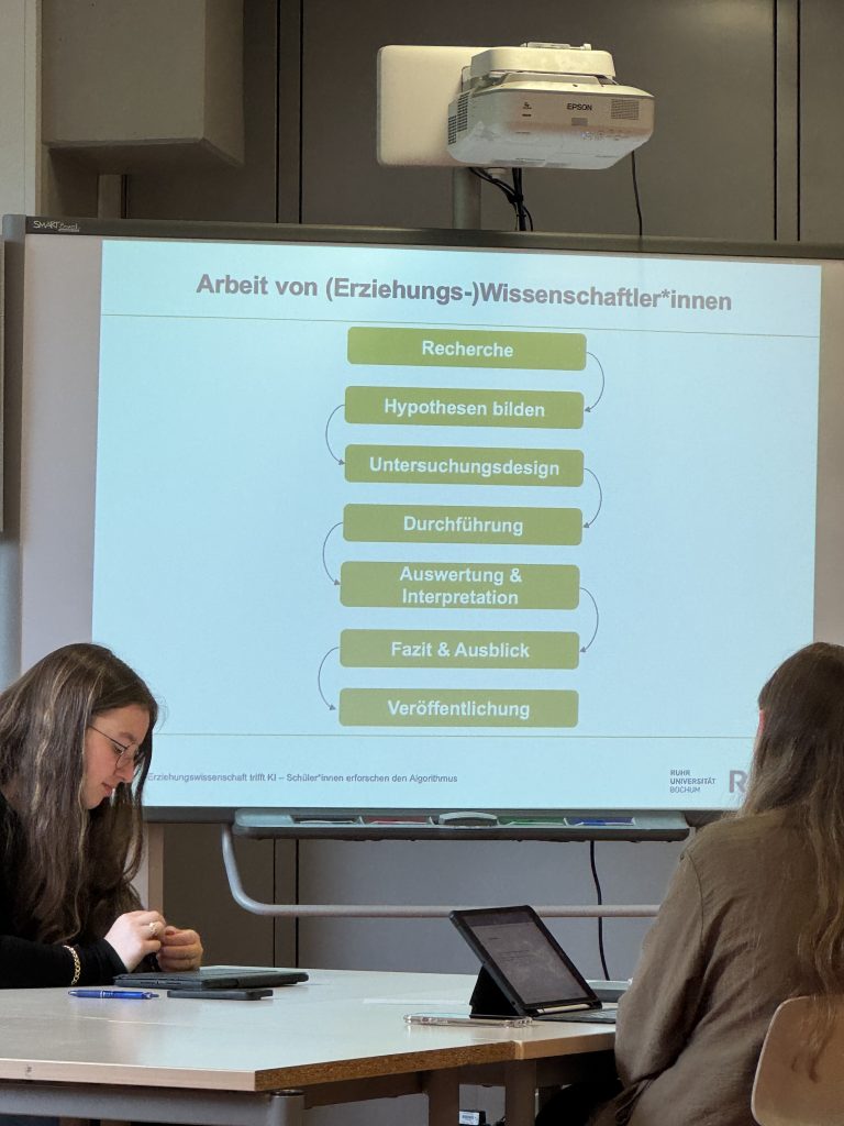 Wie funktioniert wissenschaftliches Arbeiten? Welche Rolle spielt Künstliche Intelligenz (KI) in der Bildungsforschung – und welche gesellschaftlichen Vorurteile verbergen sich in den Daten? Diesen spannenden Fragen gingen am 8. Juli zwölf Schüler:innen der Einführungsphase (EF) der Gesamtschule Osterfeld gemeinsam mit dem Alfried Krupp-Schülerlabor der Ruhr-Universität Bochum nach.